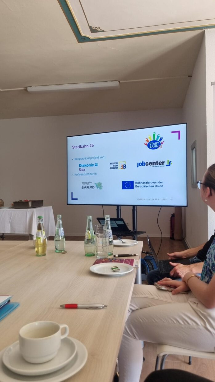 Im Anschluss führten die Gastgeber durch ihre Räumlichkeiten und Werkstätten am Standort Startbahn 25 in Saarlouis. Dort stehen vor allem die Unterstützung und Begleitung junger Menschen auf dem Weg ins Berufsleben im Fokus.