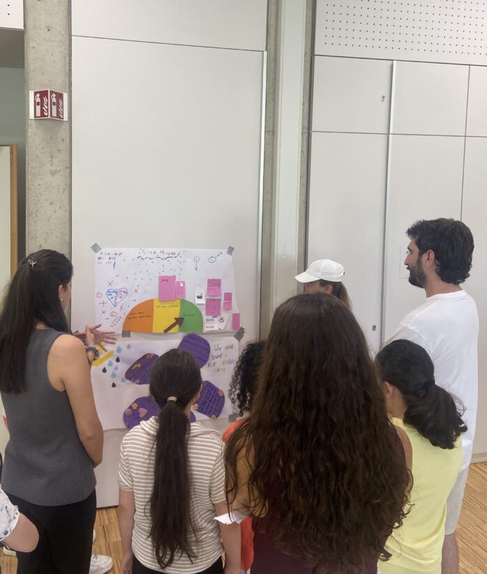 Das Projekt orientierte sich methodisch an den Prinzipien der partizipativen Forschung, die Kinder nicht als Forschungsobjekte, sondern als aktive Mitgestalter*innen versteht. Ihre Perspektive wurde bewusst in den Mittelpunkt gerückt. Die Studierenden entwickelten erste Ideen für interaktive Einheiten zu einzelnen Kinderrechten und entwickelten diese dann in Zusammenarbeit mit den Schüler*innen der dritten und vierten Klasse in der Bildungswerkstatt weiter. An mehreren Projekttagen begegneten sich Studierende und Kinder auf Augenhöhe. Mit Spielen, Gesprächen, kreativen Aufgaben und künstlerischen Ausdrucksformen setzten sie sich gemeinsam mit einem ausgewählten Kinderrecht auseinander. Dabei entstanden farbenfrohe Plakate, Zeichnungen und Collagen – echte Ausdrucksformen kindlicher Wahrnehmung und Meinungsäußerung.