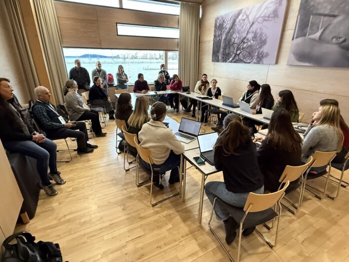 Dann war es so weit: Bei -6 Grad um 7 Uhr morgens an der FlixBus-Haltestelle wartend starteten wir unsere Reise, rund zwölf Stunden später erreichten wir Lahti bei vergleichsweise warmen 6 Grad. Am ersten Abend gab es ein gemeinsames Essen mit allen Teilnehmenden und Professor*innen, bei dem wir offiziell willkommen geheißen wurden und unsere internationalen Teampartner*innen zum ersten Mal richtig kennenlernen konnten. Nach den Willkommensreden der Gastgeber*innen wurden die vorbereiteten Videos der einzelnen Länder präsentiert.