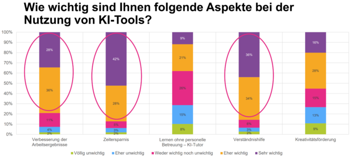 Die Umfrage „KI im Studium“ hat eindrücklich gezeigt, wie relevant das Thema für die Studierenden ist und wie engagiert sie sich damit auseinandersetzen. KI ist nicht nur ein Werkzeug, sondern eine Kompetenz, die im modernen Berufsleben unerlässlich ist.