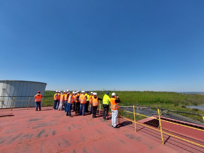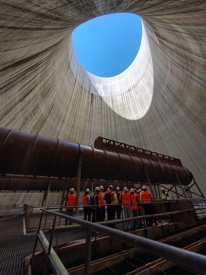 Darüber hinaus führte die Exkursion die Gruppe in den Kühlturm sowie in das Herzstück der Anlage: die Brennkammer. Von deren unterem Bereich aus bot sich ein eindrucksvoller Blick über mehr als 60 Meter Höhe nach oben. Ergänzt wurde dies durch einen Außenrundgang im Bereich des Kesselhauses in etwa 120 Metern Höhe, der bei bestem Wetter einen weiten Ausblick über das Kraftwerksgelände und die umliegende Region ermöglichte.